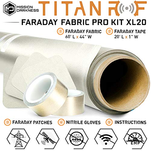 Mission Darkness TitanRF Faraday Fabric Pro Construction Kit // Blocks RF Signals, WiFi, Cell, Bluetooth, RFID, EMF, Mil