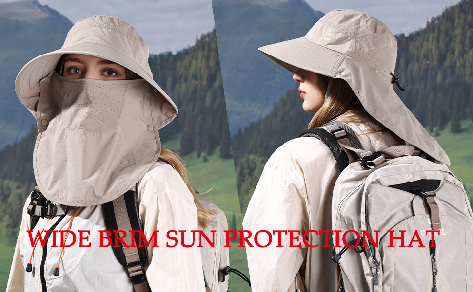 Our hat offers superior sun protection for your eyes, mouth, and nose with its detachable mask design. It provides excellent anti-UV and UPF 50+ protection, keeping you shielded from harmful rays. The wide brim ensures your face and neck stay cool even on the hottest days. A 360-degree sweatband inside and breathable lining efficiently absorb sweat, ensuring constant comfort.