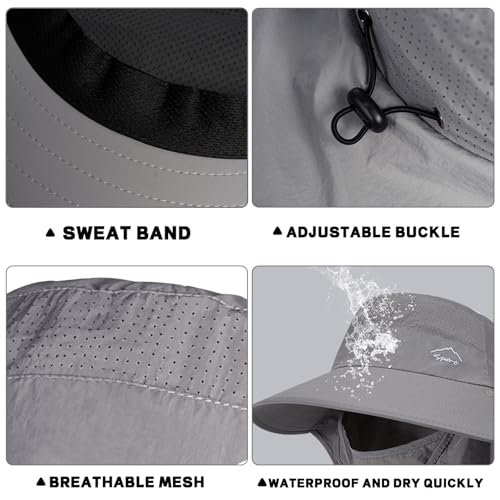 Our hat offers superior sun protection for your eyes, mouth, and nose with its detachable mask design. It provides excellent anti-UV and UPF 50+ protection, keeping you shielded from harmful rays. The wide brim ensures your face and neck stay cool even on the hottest days. A 360-degree sweatband inside and breathable lining efficiently absorb sweat, ensuring constant comfort.